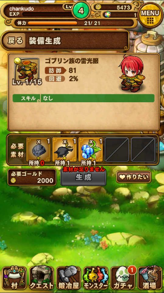 他のパズルRPGと違うのは何もバトルシーンだけではありません。収集・強化・進化させたモンスターでパーティ編成をするだけでなく、主人公の武器も自分で作成することができます。